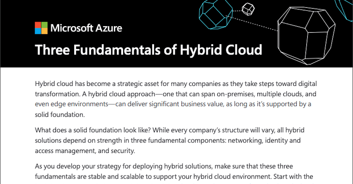 Learn how to manage infrastructure more easily, innovate faster, and improve security using the hybrid cloud. Read this one-pager to get guidance on using three fundamentals to create your hybrid cloud strategy: networking, identity and access management, and security.
